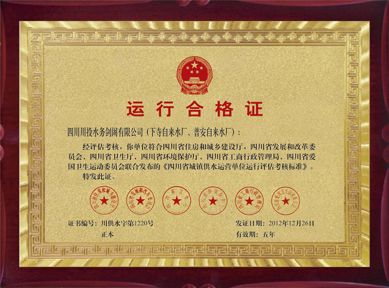 劍閣水司運行合格證