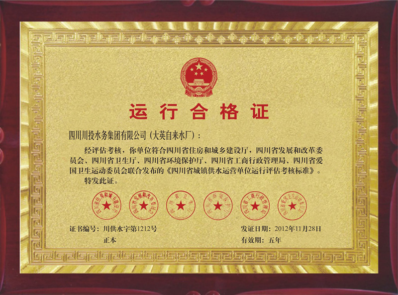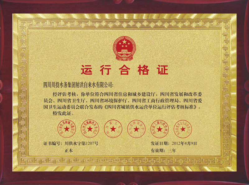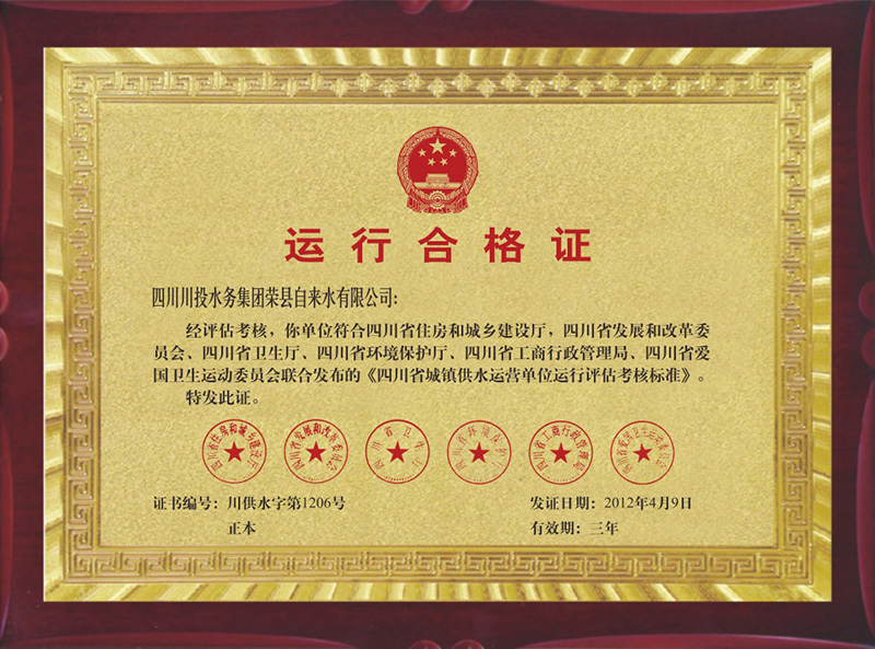榮縣水司運行合格證