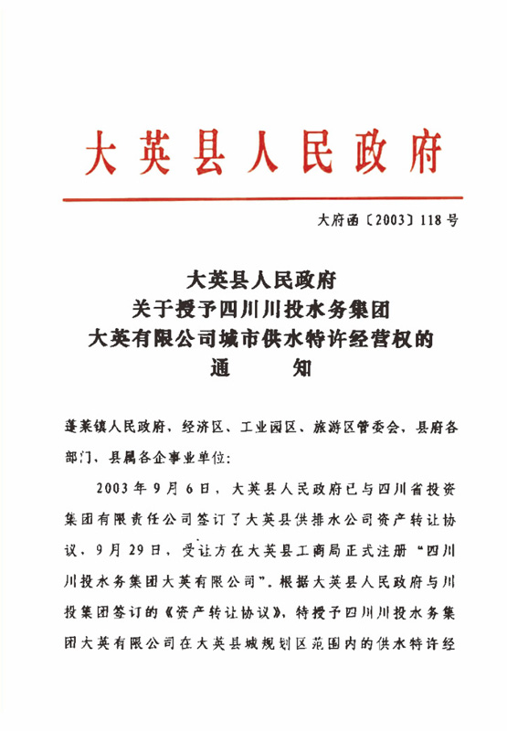 大英水司特許經(jīng)營權(quán)