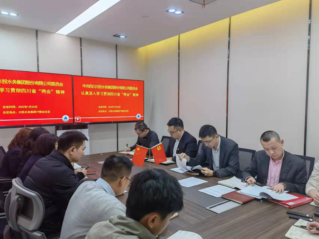 2022年1月17日至1月21日,四川省第十三屆人民代表大會第五次會議和省政協(xié)十二屆五次會議,在成都已經(jīng)圓滿完成各項議程,勝利閉幕。按照川投水務集團黨委統(tǒng)一安排部署,2022年1月25日,川投水務集團黨委委員、副總經(jīng)理嚴斯亮組織本部全體黨員干部、職工對四川省“兩會”精神進行了專題學習。