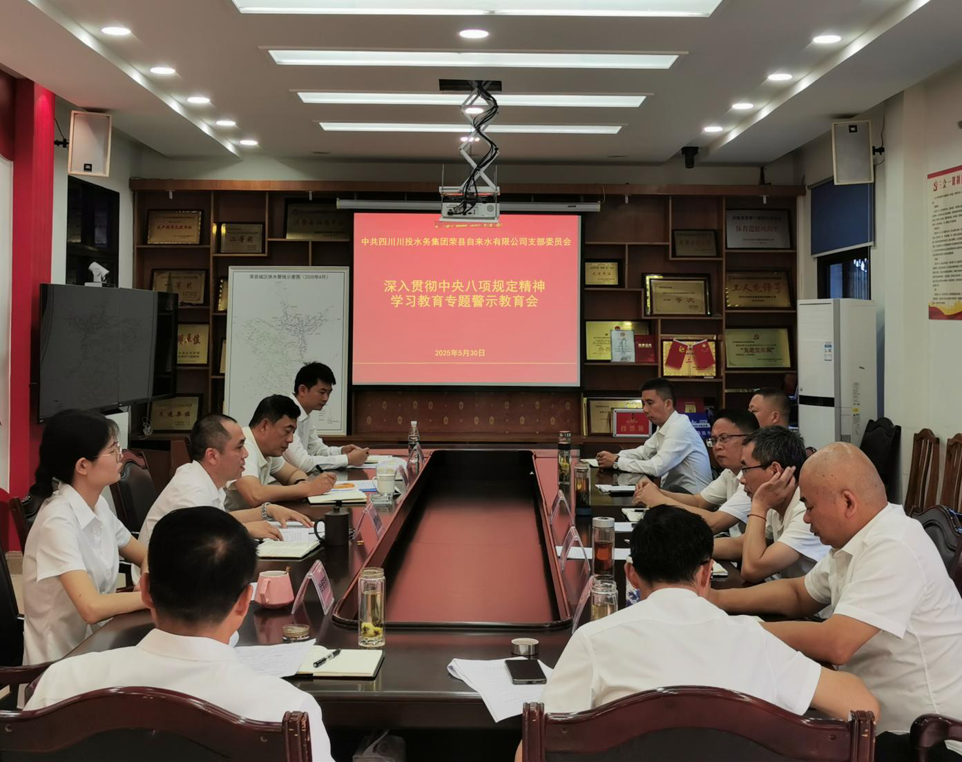 5月30日上午,榮縣公司召開了深入貫徹中央八項規(guī)定精神學(xué)習(xí)教育專題警示教育會,傳達(dá)了省委警示教育會精神,通報了違反中央八項規(guī)定精神問題典型案例,組織集體觀看警示教育片。公司支部書記、執(zhí)行董事、總經(jīng)理龔慶主持會議并講話,領(lǐng)導(dǎo)班子成員、中層干部及黨員參加會議。