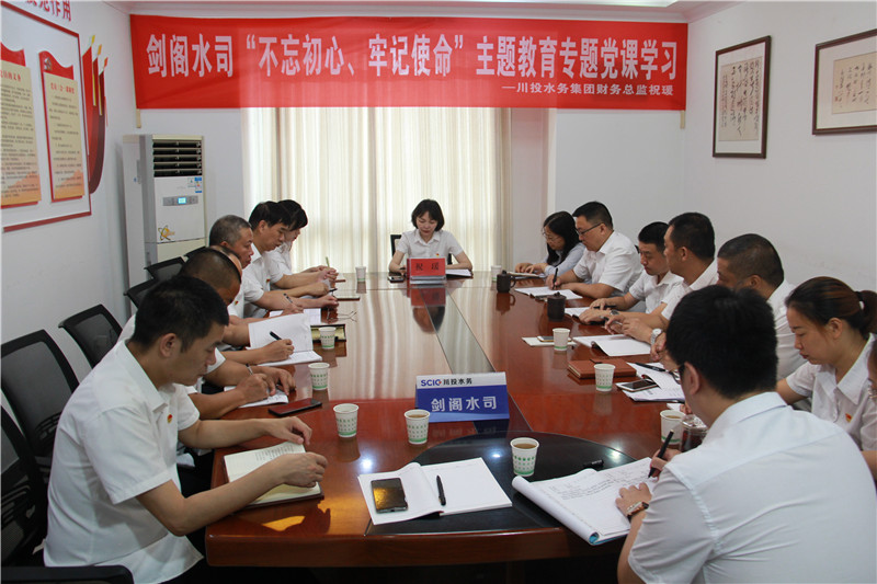 8月21日,川投水務集團財務總監(jiān)祝瑗以“忠誠黨的事業(yè)、不忘初心情懷、竭誠服務社會、牢記使命擔當”為題,組織劍閣水司全體黨員開展黨課學習。