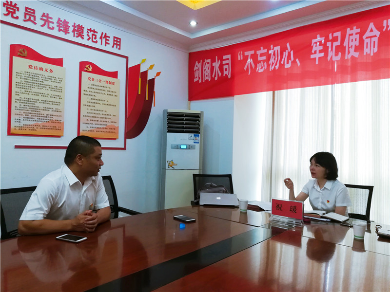 會后,??偱c劍閣水司的黨員同志開展了談心談話,并在劍閣公水司總經理何天政、副總經理杜剛的陪同下分別到普安和下寺水廠就夏季供水保障工作進行了調研指導。