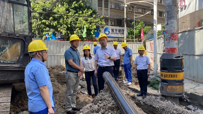 在解放中街老舊管網(wǎng)整改現(xiàn)場,楊志剛認真查看了老舊管網(wǎng)現(xiàn)場整改情況,了解了施工進度和改造工藝。