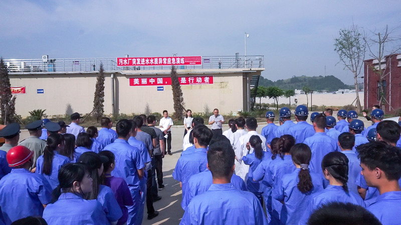 2020年6月5日上午8時(shí)10分左右,在公安交警警車(chē)的引導(dǎo)下,三輛環(huán)境監(jiān)察車(chē)、三輛應(yīng)急搶險(xiǎn)車(chē)急速駛向中江縣高新區(qū)污水處理廠,中江縣住建局、生態(tài)環(huán)境局、川投水務(wù)中江水司聯(lián)合開(kāi)展2020年污水處理廠突發(fā)進(jìn)水水質(zhì)異常事故聯(lián)合應(yīng)急演練。