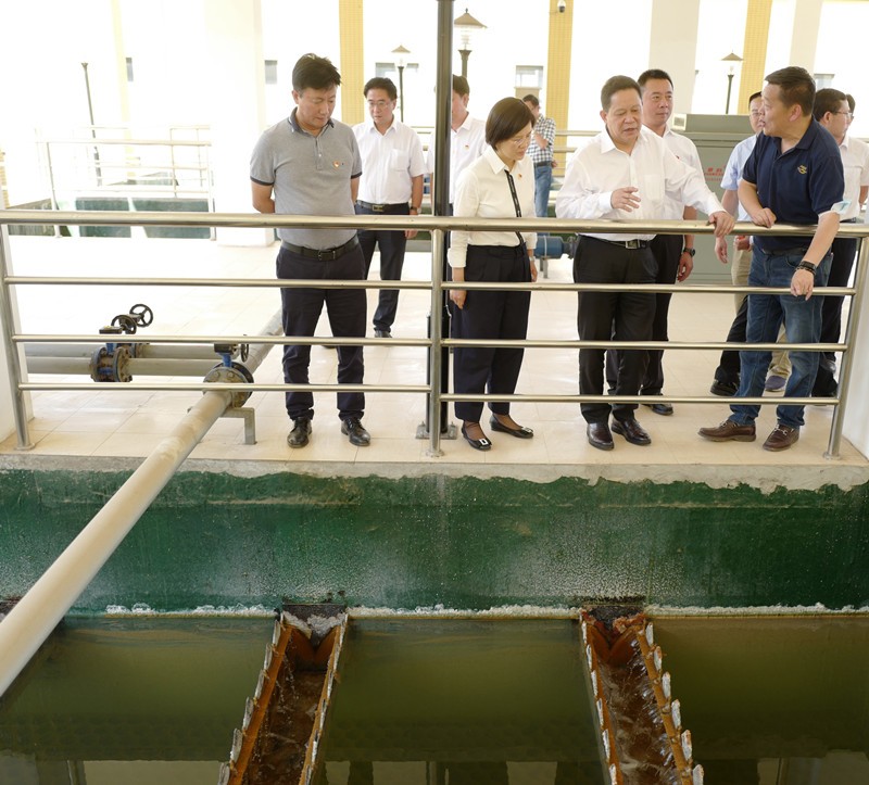 隨后,楊省長(zhǎng)一行來(lái)到川投船重一枝山工業(yè)集中式污水處理廠進(jìn)行調(diào)研,沿著污水處理廠的主工藝路線,詳細(xì)了解設(shè)備運(yùn)行及污水實(shí)時(shí)處理情況,查看污水進(jìn)、出水指標(biāo)及數(shù)據(jù)上傳,聽(tīng)取有關(guān)本項(xiàng)目的股東投資、工程建設(shè)、生產(chǎn)運(yùn)行、水質(zhì)在線監(jiān)測(cè)及達(dá)標(biāo)排放等情況。他指出,一枝山工業(yè)集中式污水處理廠項(xiàng)目不僅要做到平穩(wěn)運(yùn)行,還要有效保護(hù)安寧河水資源,使水資源循環(huán)使用及減少水資源消耗,推動(dòng)安寧河水體自身持續(xù)發(fā)展。同時(shí)要處理好安寧河流域生產(chǎn)生活與環(huán)境保護(hù)的關(guān)系,進(jìn)一步把攀西河谷的生態(tài)優(yōu)勢(shì)、資源優(yōu)勢(shì)轉(zhuǎn)化為發(fā)展優(yōu)勢(shì)。