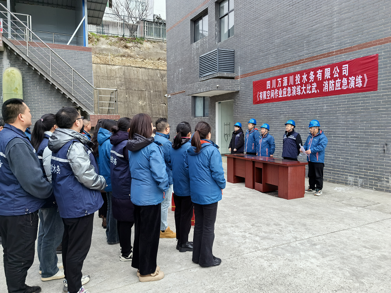為深入貫徹習近平總書記關(guān)于安全生產(chǎn)重要論述,以最堅決的態(tài)度、最嚴格的要求、最扎實的舉措,抓實抓細抓好安全生產(chǎn)工作,牢牢守住安全發(fā)展的底線。2024年1月24日,萬源公司在馱山水廠開展了有限空間作業(yè)大比武和消防演練。萬源公司黨支部書記、執(zhí)行董事、總經(jīng)理李至彬主持演練活動,經(jīng)營班子成員及員工共計50余人參加此次活動。
